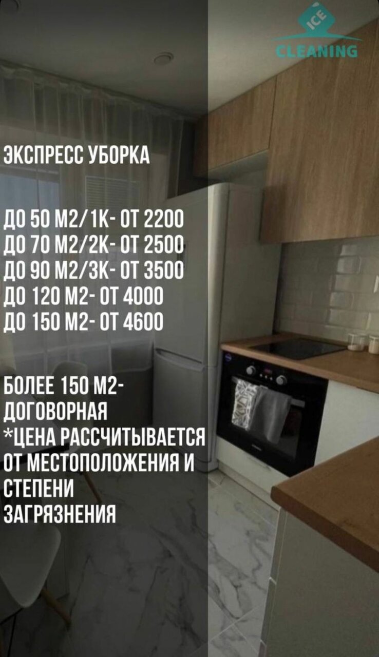 ДО 50 M2/ 1K- ОТ 2200ДО 70 M2/2K- ОТ 2500ДО 90 М2/ЗК- ОТ 3500ДО 120 M2- ОТ 4000ДО 150 M2- ОТ 4600БОЛЕЕ 150 М2-ДОГОВОРНАЯ*ЦЕНА РАССЧИТЫВАЕТСЯ ОТ МЕСТОПОЛОЖЕНИЯ И СТЕПЕНИЗАГРЯЗНЕНИЯ